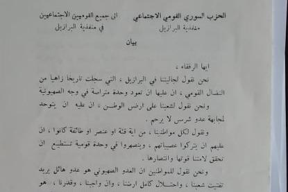 اكتفي بما اوردت، ذلك ان الانتشار الكبير لحزبنا في البرازيل لا تغطيه صفحات. في نبذات سابقة اوردت اسماء كثيرة، بهدف ان احفظ لذاكرة الحزب اقصى ما تتوفر لدي من معلومات، انما اسجلّ اسفي ان الامين نواف حردان لم يتمكن ان يصرف وقتاً ثميناً لتسجيل معلوماته الكثيرة عن حزبنا في البرازيل، وعن الرفقاء الذين تميّزوا عطاء وتفانيا وحضوراً، وهو كان تولى مسؤولية ناموس منفذية، متفرغاً لزيارة المناطق، في وقت كان الامين البرتو شكور يتولى مسؤولية منفذ عام البرازيل. كان الامين نواف يملك، بفضل زياراته الى المناطق، معلومات ثمينة عن الفروع وعن الرفقاء كان مفيداً لو تمكّن، ان يدوّنها، فتبقى. من المؤسف ان لا احد ممن تولى المسؤوليات ونشط وحقق حضوراً حزبياً جيداً على امتداد اميركا اللاتينية. ترك مذكرات، او دوّن سيرته ومروياته ومعلوماته، فضاعت. وعندما انكببتُ على مدى سنوات وصولاً الى نشر نبذات عن معظم الرفقاء الذين كان لهم حضورهم على مدى دول اميركا اللاتينية، وجاء من يعرض استعداده لتغطية طباعة كتاب يجمع كل تلك النبذات، انما اصطدم التمني بعقبات لا ارغب ان اخوض في تفاصيلها الموجعة، فتنضم الى غيرها من "التمنيات" التي لم تصل الى التنفيذ. عن ذلك قد أحكي في وقت لاحق، لتبقى شهادة للتاريخ.