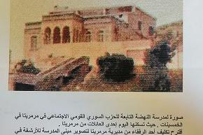 وفي مرمريتا بقيت خمس سنوات كاملة مع آخرين من المدرّسين نعلّم في مدرسة النهضة(1) التي صارت مشهورة. في المدرسة وجد قسم داخلي ضم طلاب الذين كانوا يأتون من مناطق بعيدة مثل شمال الشام، وكنت مع بقية المدرسين نتناول الطعام في ذلك القسم. في البداية، أعني قبل إنشاء ذلك القسم كانت بعض العائلات القومية تساعدنا. أما الرواتب فلم تكن موجودة في البداية، للمعلمين القوميين الاجتماعيين مثلي ومثل الرفيق نجيب خياط (كحّالة) لعدم وجود أموال، فمدخول المدرسة كان قليلاً، إذ كانت الأقساط المدرسية زهيدة، بالإضافة الى ان المدرسة كانت تساعد بعض الطلاب من ذوي العائلات الفقيرة، ولهدف إذاعي خدم انتشار الحزبفي تلك المنطقة (الارثوذكسية).