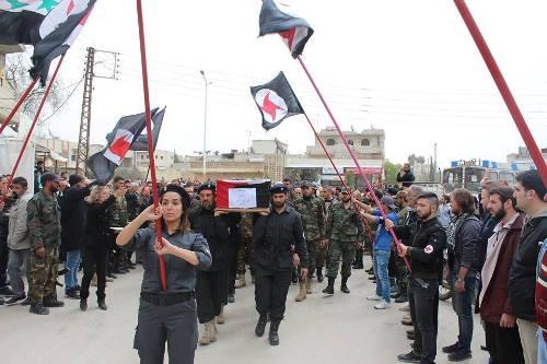 الحزب وأهالي سلمية شيعوا الشهيد الرفيق حسين المعمار وشهداء مجزرة قرية المبعوجة | |||